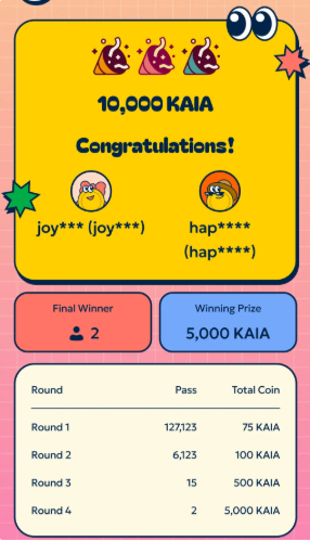 "Reward Claim Summary — Claiming is only possible when your balance is 10 USDT or 100 KAIA or more. Gas fees will be deducted from your tokens. Inventory will be distributed within 3 days after the game ends!"