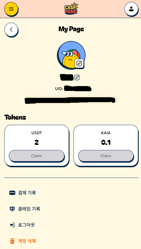 3.1 UID : 기존 CashPang 게임에서 사용하던 사용자 UID